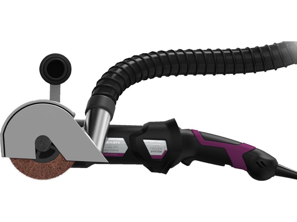 Az alumínium porelszívó fedél oldalról lezárja a POLY-PTX® 802 HT védőburkolatot. Minden szabványos ipari porszívóhoz csatlakoztatható. A speciális tömlővezető lehetővé teszi a sarkokban való munkavégzést.