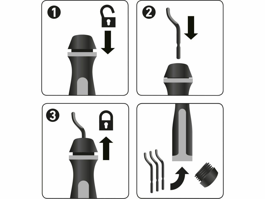 - Extra kemény HSS-Co5 (M35) acélból készültek, HRC 65-66 keménységgel, és alkalmasak rozsdamentes acélból, acélból, lágy fémekből, műanyagokból stb. készült termékek éleinek letörésére.