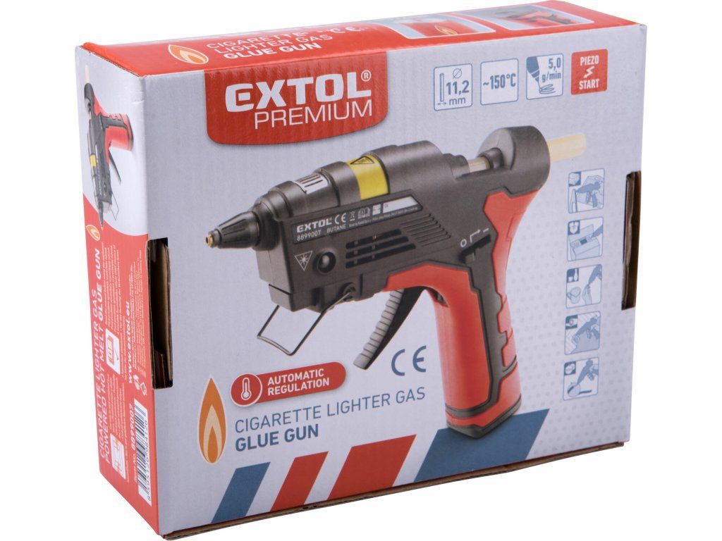 A gázos ragasztópisztoly forró ragasztó olvasztására és felvitelére szolgál, papír, parafa, fa, bőr, textil, műanyag, kerámia stb. gyors ragasztására. A ragasztópisztoly egy nagyon gazdaságosan tervezett fűtőelemmel rendelkezik, amely hasonlóan működik, mint az elektromos ragasztópisztolyok. Miután a pisztoly felmelegedett az üzemi hőmérsékletre, a fő láng kialszik, és csak egy kis gyújtóláng marad égve. Amint a hőmérséklet egy bizonyos érték alá csökken, a fő láng automatikusan újragyullad, és felmelegíti a pisztolyt üzemi hőmérsékletre. A pisztoly könnyebb gázt használ üzemanyagként, amely könnyen beszerezhető, például újságosstandokon. A pisztoly harmadik generációs töltőszeleppel van felszerelve, amely biztosítja a könnyű töltést felesleges veszteségek nélkül. A tápkábel hiánya növeli a használat kényelmét és a mozgás szabadságát.